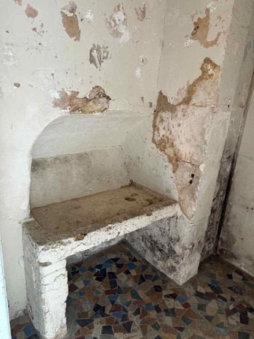 Bâtiment en mauvais état avec accès place de l’Eglise, renfermant garage et débarras.