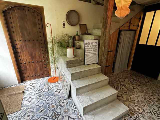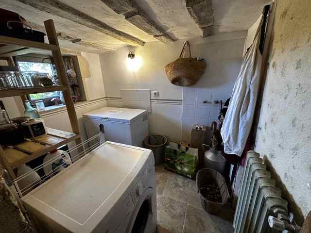 Au rez-de-chaussée : une entrée avec escalier, salle d’eau avec WC, à gauche salon avec cheminée, à droite, dégagement, une chambre, séjour avec coin cuisine aménagée et équipée et cheminée avec four à pain, buanderie aménagée dans l’ancienne laiterie.