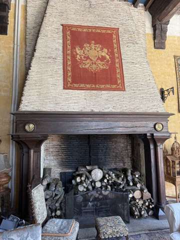Grande Salle de Réception : Accueillez vos convives dans une salle spacieuse avec cheminée monumentale.
