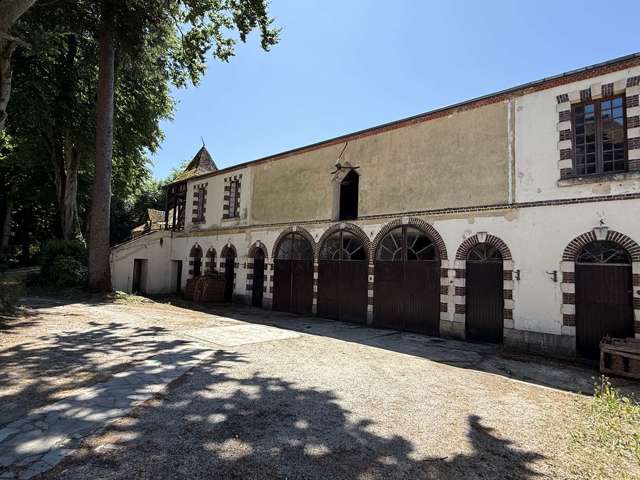 4 anciennes écuries, débarras, deux garages, et un bûcher, et à l’étage des dépendances :