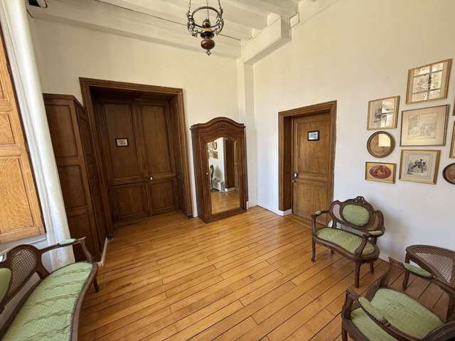Ancienne Salle d’Exposition : Dotée d’une cheminée et de vitrines suspendues, parfaite pour exposer des œuvres d’art.