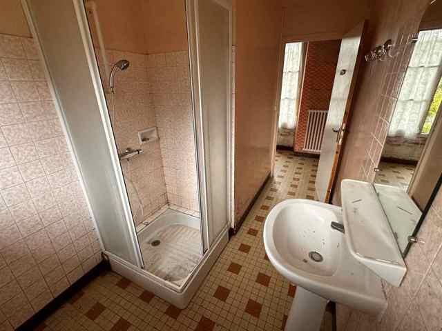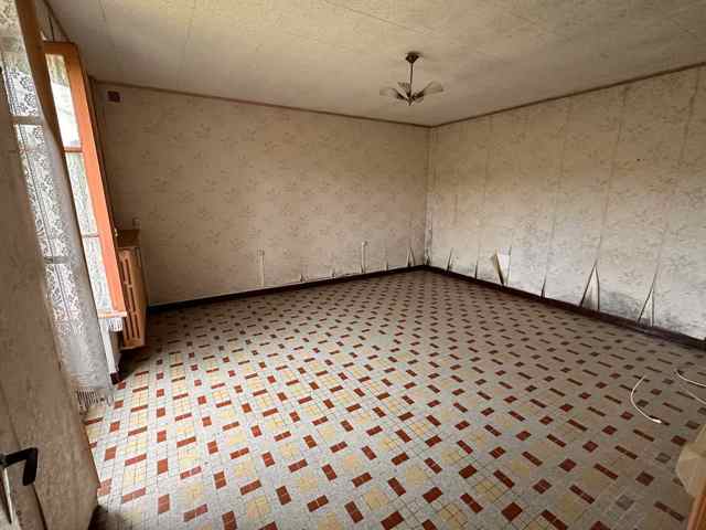 Une entrée, à droite salle à manger, au fond débarras, à gauche cuisine, dégagement, wc, salle d’eau, chambre. Chaufferie en côté.