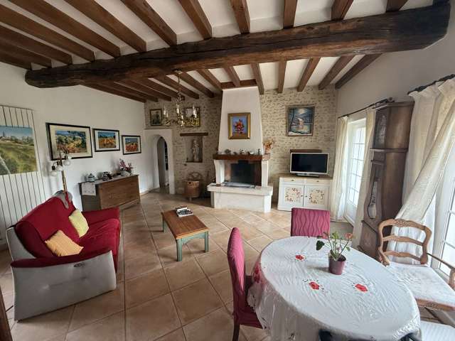 • Séjour lumineux avec cheminée et insert polyflamme à eau chaude (chauffage central)