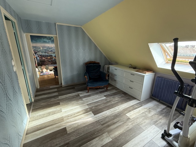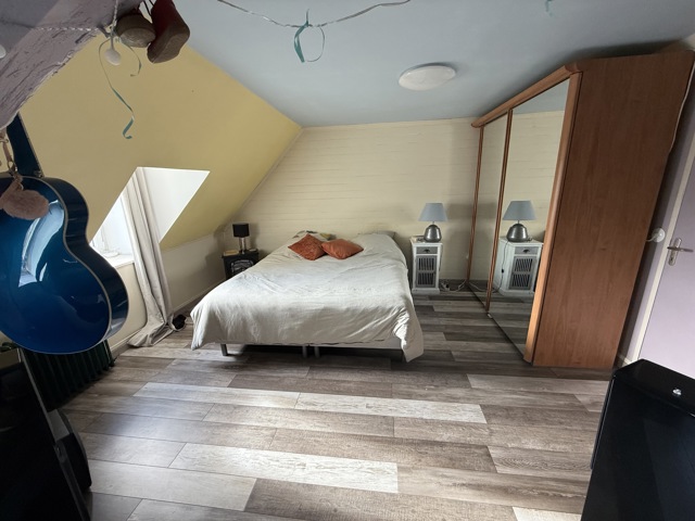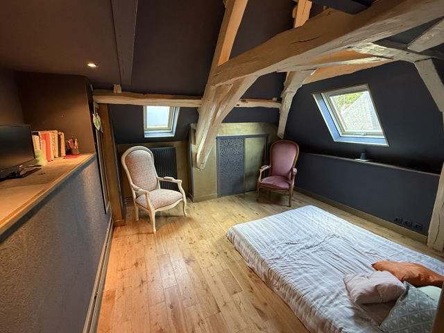 Au 2ème étage : Un palier, une chambre côté jardin, de l’autre côté une seconde chambre, salle d’eau avec WC et une autre chambre à la suite.