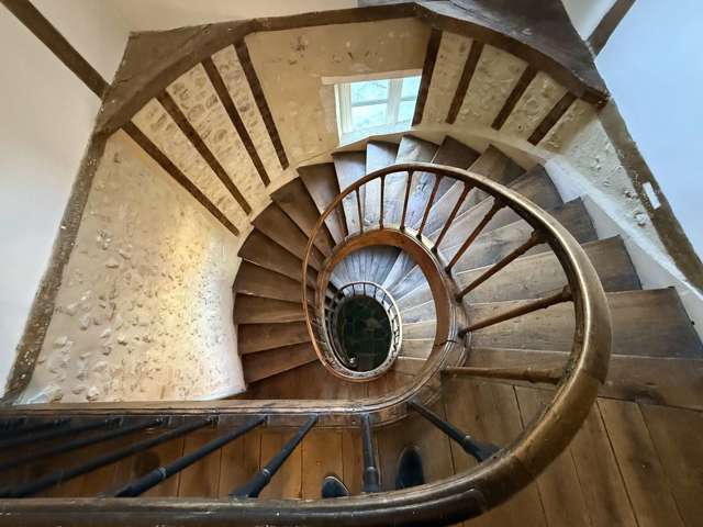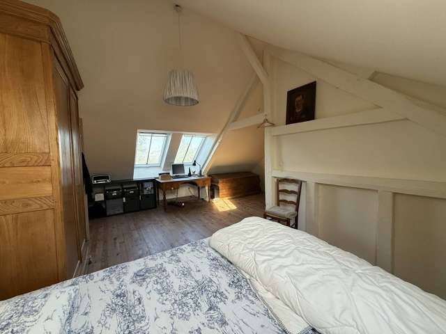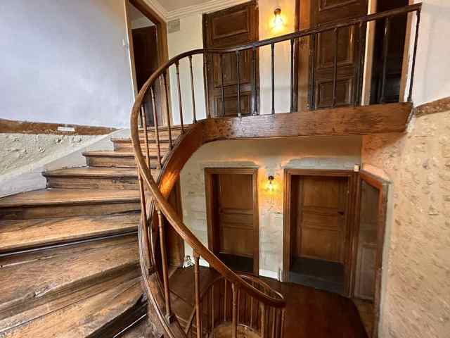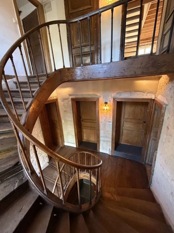 Au 1er étage accessible par un magnifique escalier à vis en chêne massif :