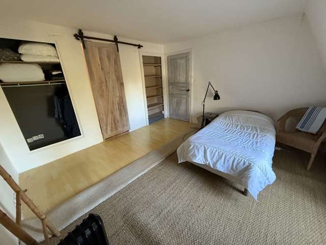 • chambre parquetée avec salle d’eau privative et WC.