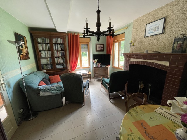 Une entrée, à droite cuisine aménagée et équipée à gauche séjour avec cheminée, dégagement couloir, chambre et salle d’eau WC.