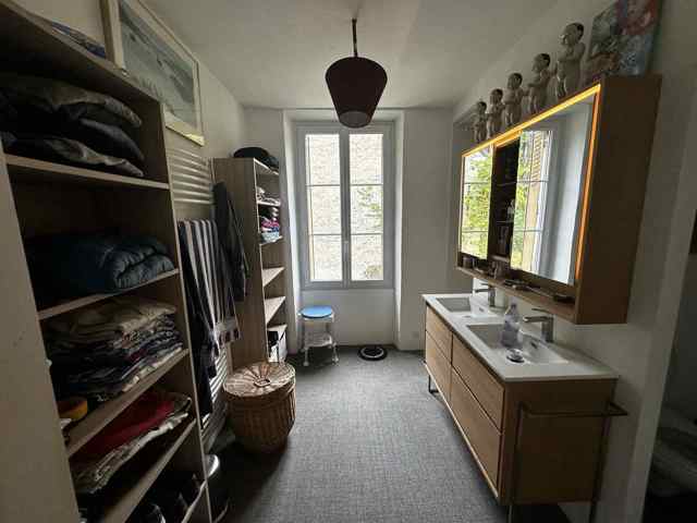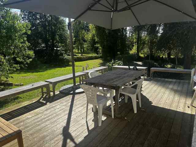 “Maison de pierres sous son crépis, pleine de charme, lumineuse, accès commerces à pieds, terrain en déclivité vous offrant une perspective depuis la terrasse sur la pièce d’eau et la campagne'”