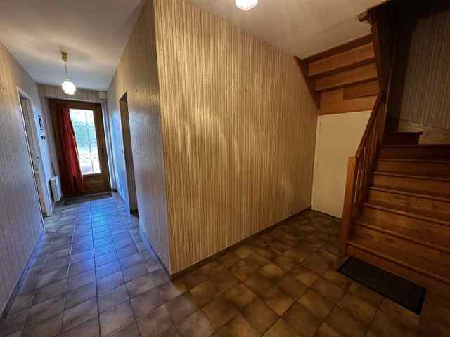En rez-de-chaussée : entrée, cuisine, grand séjour avec cheminée, salon, trois chambres et un bureau, salle de bains avec douche et baignoire, WC.